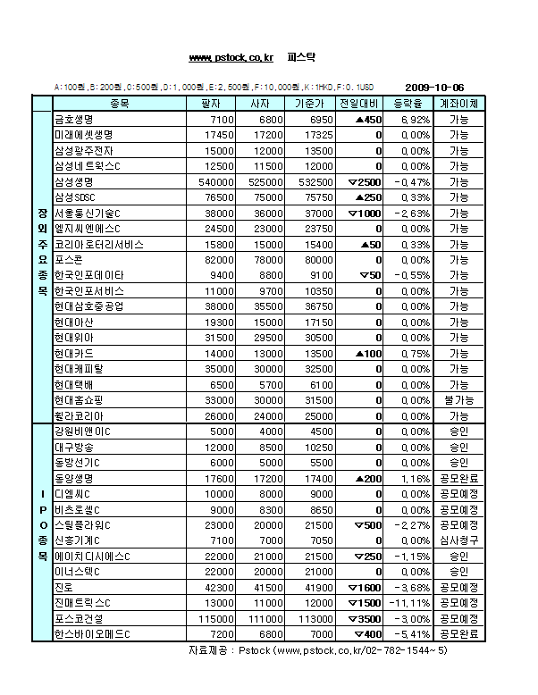 진로(음료 제조업) : 청약일(10.08~10.09), 주간사(삼성증권, 우리투자증권)