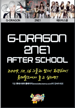 [프라임경제] 국내 최정상급 가수 애프터스쿨, 2NE1, G - Dragon 이 심야에 롯데월드를 찾아 한밤중에 미니 콘서트를 개최한다. 가요계를 주름잡고 있는 아이돌 스타들이 총출동, 눈을 뗄 수 없는 화려한 퍼포먼스를 선보일 예정이다.