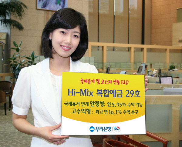 [프라임경제] 우리은행와 국내 증시에 투자해 고수익을 추구하는 신상품 하이-믹스(Hi-Mix) 복합예금 29호를 1000억원 한도로 다음달 2일까지 판매한다고 8일 밝혔다.
