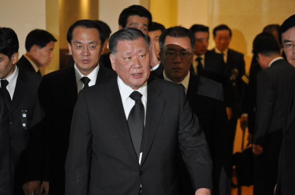 [프라임경제] 8일 오후 2시30분경 서울아산병원에 마련된 故이정화 여사의 빈소를 찾은 정몽구 현대기아차 회장이 고인 곁에 잠시 머문 뒤 빈소를 나서고 있다. 정 회장의 오른쪽에 정의선 부회장의 모습도 보인다.