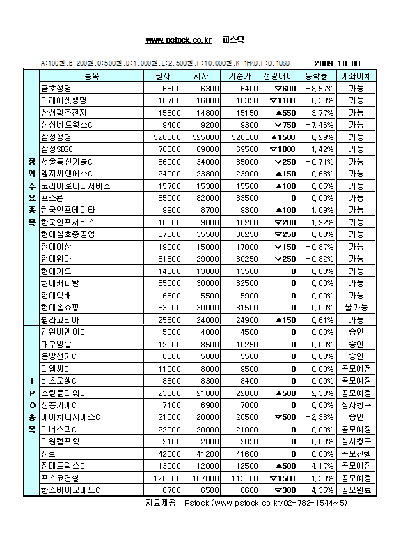 금일 공모청약을 실시한 진로는 4만1600원에서 움직임이 없었다. 내일(9일) 상장예정인 한스바이오메드는 4.35% 하락하여 6600원으로 장외거래를 마쳤다. 이밖에, 공모예정인 스틸플라워(+2.33%)와 진매트릭스(+4.17%)는 각각 2만2000원, 1만2500원으로 마감했다.