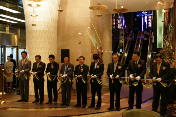 | <사진=(주)그랜드코리아레저(GKL)9일 오후 외국인전용 카지노 세븐럭 서울강남점 3층 오픈행사에서 GKL 권오남 사장(왼쪽에서 5번째)을 비롯한 인사들이 테이프 커팅을 하고 있다.> | ||