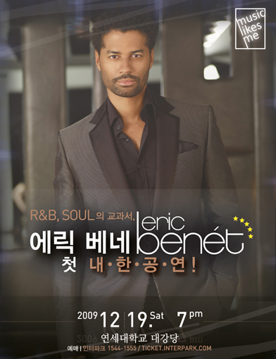 2009년 하반기 공연계 최고의 빅뉴스인 에릭 베네의 내한공연은 오랫동안 그를 기다려왔던 한국의 음악팬들에게 있어 가슴 벅찬 시간이 될 것이다. R&B, 재즈, 팝, 가스펠등 소울음악의 진수를 보여줄 에릭 베네의 첫 내한공연은 10월 15일 목요일 낮 12시부터 인터파크 티켓 사이트에서 판매된다.