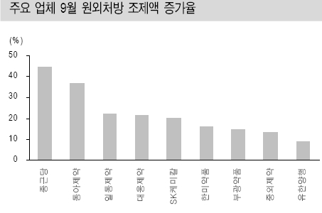 배기달애널리스트에 따르면 지난해 9월 기준으로 원외처방 조제액이 전년 동월 대비 19.7% 증가한 8127억원을 기록한 것으로 나타났다.