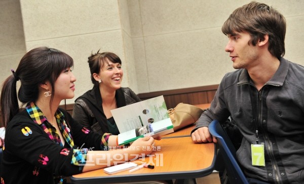 [프라임경제]13일 서울 광진구 화양동에 위치한 건국대 국제학사에서 열린 ‘유학생 멘토 프로그램 간담회’에서 세계 각국에서 한국으로 유학 온 유학생과 이들을 돌보는 한국인 대학생 멘토 파트너들이 이야기를 나누고 있다. 건국대는 올해 2학기부터 유학생들의 대학 생활 적응과 한국 문화 이해를 돕기 이들을 돌보는 학생들에게 1인당 50만원의 장학금을 지급, 유학생의 수업과 학교생활을 전담해서 도와주는 ‘유학생 멘토 장학금’ 제도를 운영하고 있다.