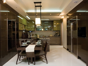 가변형 벽체설계로 다양한 공간의 구성도 가능하다. 실제로 가족구성원의 성별, 연령별로 다양한 공간연출이 가능하도록 배치한 가족실 등 공간활용도를 높일 수 있도록 구성됐다. 주방에서는 ‘ㄷ’자형, ‘11’자형 구조로 동선활용에 신경을 썼으며 건식·습식공간 분리를 통해 맞춤 주방공간을 조성했다.