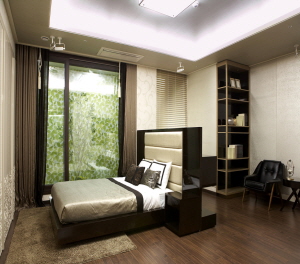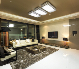 115㎡B형은 다크 그레이와 브라운 톤의 컬러를 매치해 도시적인 느낌을 주고 있다. 주방에는 대면형 아일랜드 식탁이 설치됐으며 가장 넓은 주택형인 134㎡형은 그로시한 다크 브라운 무늬목 컬러로 중후하면서도 세련된 스타일로 조성했다. 주방과의 분리를 위한 파티션 도어가 설치됐으며 식당과 거실에는 클래식한 골드 포인트의 우물천정을 통해 호텔분위기를 연출했다.