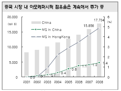 정보라 대신증권 연구원에 따르면, 아모레퍼시픽의 경우 방문판매 영업정비 및 특히 브랜드‘아리따움’을 통한 매스채널 공략 성공으로 외형성장세를 보일 조짐이다.