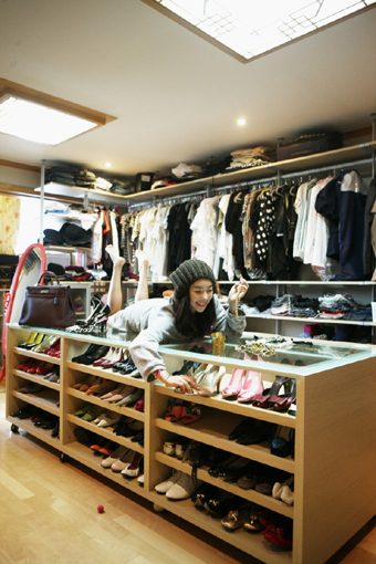화려하진 않지만, 깔끔한 느낌을 주는 그녀의 드레스룸은 집 한켠에 약 10평 남짓한 공간에 만들어져있다. 켠켠이 칸을 짜서 옷걸이 장을 만든 후 아이템 별로 분류해 정리해둔 것이 인상 적이다.