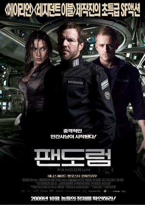 '에이리언', '레지던트 이블' 초특급 제작진의 SF액션스릴러 '팬도럼'은 6만명의 승객이 모두 사라져 버린 인류 최후의 이주우주선 ‘엘리시움호’의 비밀, 그리고 정체를 알 수 없는 놈들의 충격적인 인간 사냥을 그린, 한시도 눈을 뗄 수 없는 SF액션스릴러이다. '지.아이.조'의 데니스 퀘이드와 '엑스맨'에서 엔젤로 관객들에게 자신의 존재를 각인시킨 벤 포스터, '에이리언' 시고니 위버, '레지던트이블' 밀라 요보비치를 잇는 여전사 안체 트라우가 주연을 맡아 아드레날린 충만한 긴장감 넘치는 액션을 선사한다.