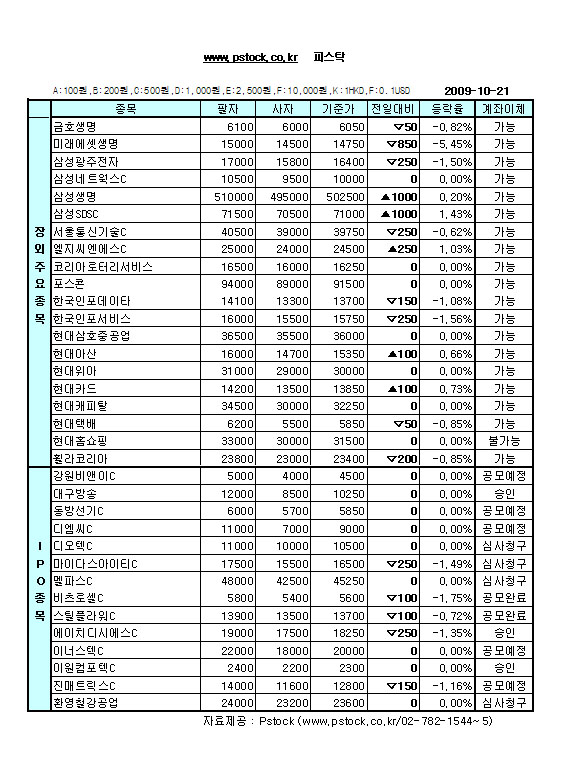 삼성광주전자(-1.50%)도 나흘만에 하락전환해 1만6400원으로 마감했다. 한편, 오는 21일부터 공모가 예정되어 있던 포스코건설(-8.21%)은 공모 연기 소식에 실망매물의 출회로 8.21% 급락했다. 포스코건설측은 공모가가 희망가 수준에 못미쳐 상장을 무기한 연기한다고 밝혔다.