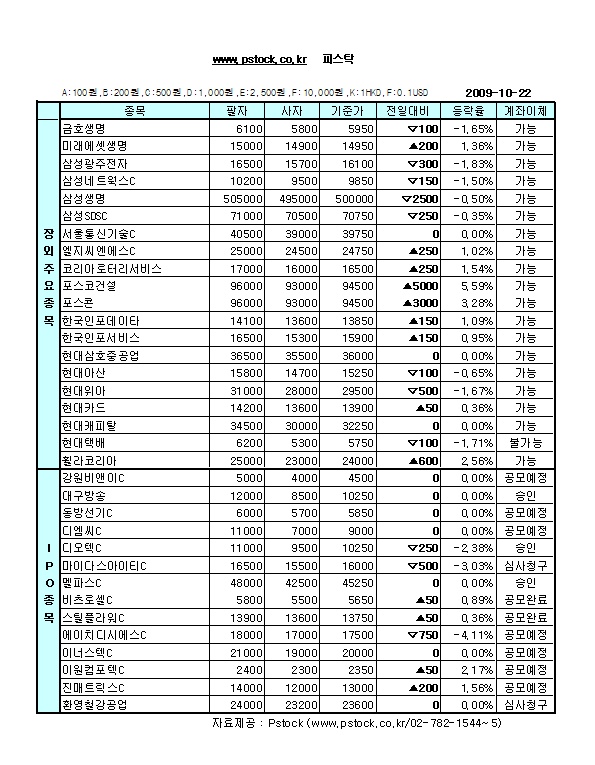 서울통신기술은 3만9750원에서 움직임이 없었다. 공모철회로 인해 하락폭이 컸던 포스코건설은 이날 5.59% 상승전환하며 94500원을 기록했고, 9만1500원에석 관망세를 유지하던 포스콘도 3.28% 상승했다.
