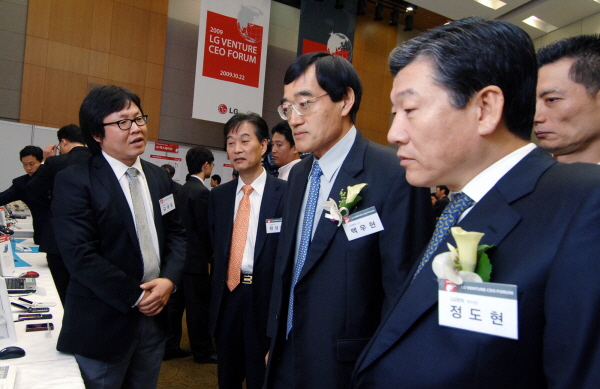 | <LG 벤처 CEO 포럼에 참석한 CTO 백우현 사장, CFO 정도현 부사장.> |