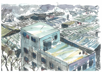 선배분이 3층에 살고 있고, 나는 그 옥상에다 지어놓은 별채를 임대받아 살고 있다.