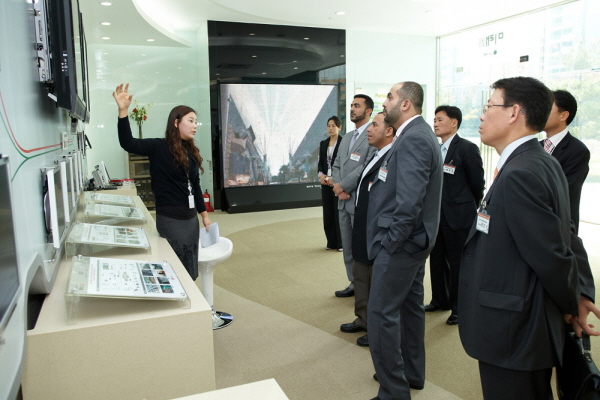 | <오만의 재무부 투자국장, 교통통신부 개발 국장 등 정부 관계자들이 LG CNS 상암IT센터를 방문, 대한민국의 전자정부 등 첨단IT구축사례를 견학하고 향후 IT협력방안에 대해 논의했다.> |