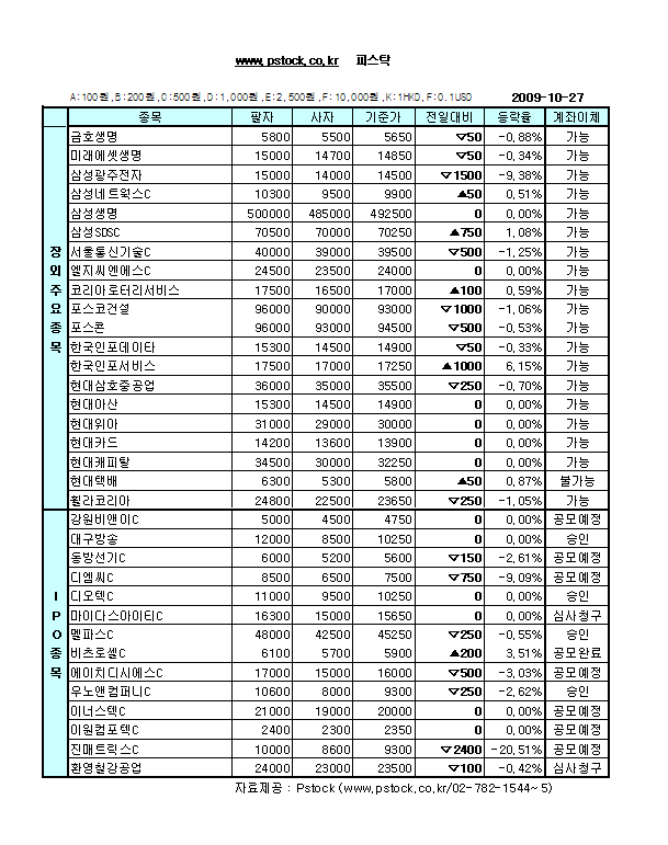 장외 주요 종목들은 하락세 및 혼조세를 보였다. 삼성계열주에서는 1만6000원대를 유지하던 삼성광주전자가 9.38% 큰폭으로 하락하며 1만4500원으로 장을 마쳤다.