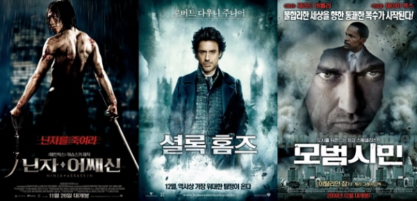 <올 하반기 기대작인 '닌자 어쌔신', '셜록 홈즈', '모범시민' (좌측부터)> |