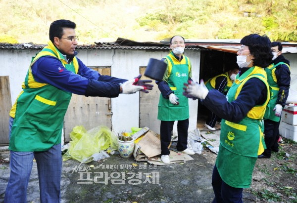 | <에쓰오일 수베이 대표(사진 왼쪽)가 에쓰오일 사회봉사단원들과 함께 3일 오전 서울시 서대문구 홍제3동 개미마을에서 ‘사랑의 연탄나눔’ 봉사활동을 펼치고 있다.> | ||