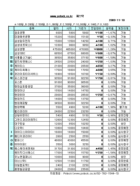 내일(11일) 유가증권시장에 상장하는 에스케이씨앤씨는 3만1500원으로 장외거래를 마쳤다. 이밖에, 청구종목인 아세아텍과 코디에스, 환영철강공업은 각각 7500원, 4850원, 2만3500원에서 움직임이 없었다.