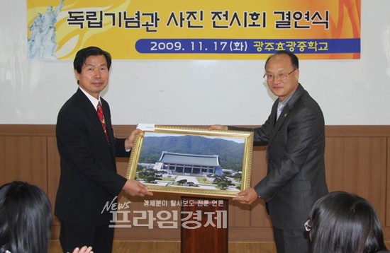 이번 증정식은 국립5․18민주묘지 추모관 3층 기획전시실에서 광복64주년을 맞아 2009년 8월 3일부터 10월 31일 까지 개최된 『사진으로 보는 독립기념관』특별 기획전시전에 전시되었던 작품 26점을 국립5․18민주묘지와 자매결연을 맺은 광주 효광중학교에 다시금 전시하는 목적에서 개최되었다.