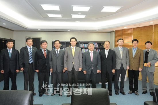 | 전갑길 광산구청장(사진 왼쪽부터 5번째)과 선우중호 광주과학기술원장(6번째)이 관련 직원들이 참석한 가운데 MOU를 채결하고 상호 협력해 나가기로 했다. | ||