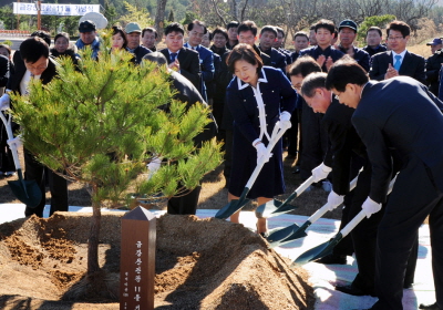 | <사진설명 = 18일 현정은 현대그룹 회장이 금강산관광 11주년 현지 기념행사에 참석해 임직원들과 기념식수를 하고 있다.> | ||
