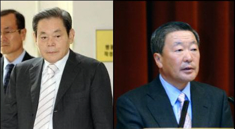 <사진=이건희 전 삼성그룹 회장과 구본무 LG 그룹 회장> |