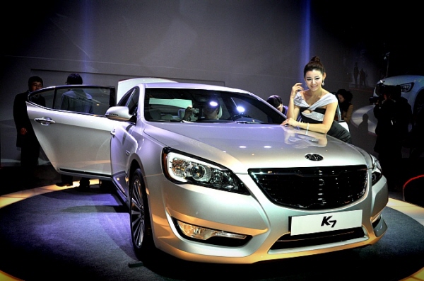 [프라임경제] 기아차는 24일, 서울 하얏트호텔에서 K7의 신차발표회를 갖고 준대형 세단의 역사를 새롭게 쓸 걸작인 최첨단 하이테크 럭셔리 세단 K7의 웅장한 모습을 공개했다. 레이싱걸이 화려한 자태를 드러낸 K7과 함께 포즈를 취하고 있다.