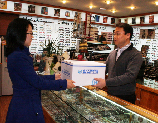 | <㈜한진과 서울시 안경사회의 업무제휴를 통해, 시내 안경점에서도 택배 물품을 편리하게 보낼 수 있을 전망이다.> |
