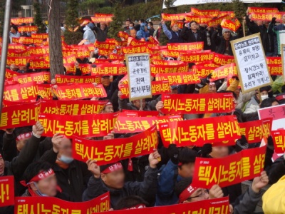 이들은 결의문을 통해 “택시노동자의 최저임금 보장의 요구는 당연하지만 택시자본은 정당한 요구를 묵살한 채 사납금인상과 노조탄압으로 일관하고 있다”며 “정부는 최저임금제와 부가세 경감 취지를 훼손시키는 일체의 행위를 단호히 처벌해야 한다”고 밝혔다.