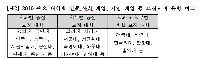 그동안 대학 입시의 역사를 본다면 본고사 시대인 1960년대부터 1970년대까지는 단과대별 모집, 학력고사 시대인 1980년대부터 1990년대 중반까지는 학과별 모집, 수능 시대인 1990년대 중반부터 2000년대 후반까지는 학부별 모집이 대세를 이루었다.