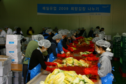 이번 행사는 연말연시를 앞두고 진행된 매일유업 사회공헌 활동의 일환으로 우리 주위의 어려운 이웃들이 풍성한 겨울을 나기에 실질적인 도움이 되기를 희망하는 바람으로 진행되었다. 이날 매일 유업 임직원 100여명은 정성스레 5,000Kg의 김장을 담갔으며 행사에 참가한 일부 남자직원들은 난생 처음 담가보는 김장 담그기에 무척 진지한 모습이었다.
