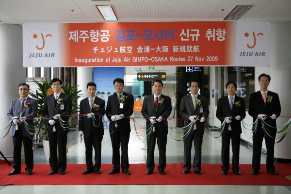 ‘제3민항’의 입지를 다지게 된 제주항공은 11월27일 오후 1시10분 김포국제공항 국제선 38번 게이트 앞에서 김포~오사카 취항식을 가졌다. 취항식에는 성기천 한국공항공사 서울지역본부장 등 공항 관계기관장과 고영섭 제주항공 사장을 비롯한 임직원들이 참석했다.