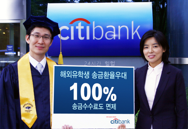 씨티은행은 2일 경제위기, 고환율 등으로 어려움을 겪고 있는 해외유학생 학부모들의 고통 분담 차원에서 지난 9월부터 시행해 온 해외유학생 송금환율에 한해 100% 우대 및 해외 송금 수수료 면제 서비스를 2010년 2월 26일까지 연장 실시한다고 밝혔다.