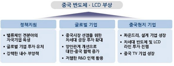 그 동안 중국정부는 거대 내수시장을 활용해 글로벌 기업의 중국진출을 유도했으며 IT기기의 핵심부품인 반도체와 LCD 산업에도 힘써왔다.