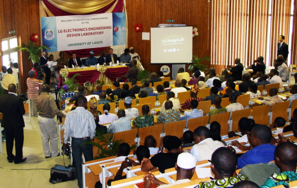 | <'LG 디자인 랩' 개소식에는 나이지리아 하원 부의장 치부돔 누체 (Chibudom Nwuche)를 비롯해 라고스 대학 톨루 오둑배미(Tolu Odugbemi) 총장과 교수진, 그리고 현지 유력 인사 등 200여 명이 참석해 성황을 이뤘다.> |