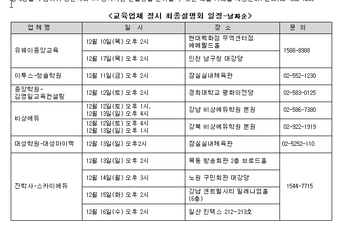 교육업체들은 오는 9일 성적 발표 이후 최종 전략설명회를 잇달아 개최하며 마지막 입시전쟁을 준비하는 수험생들에게 도움을 준다는 계획이다.