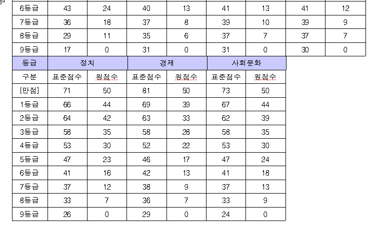 사회탐구 영역은 최고점 표준점수로 경제 과목이 81점으로 가장 높았고, 한국근현대사가 67점으로 가장 낮아 14점 차이가 나타났다.