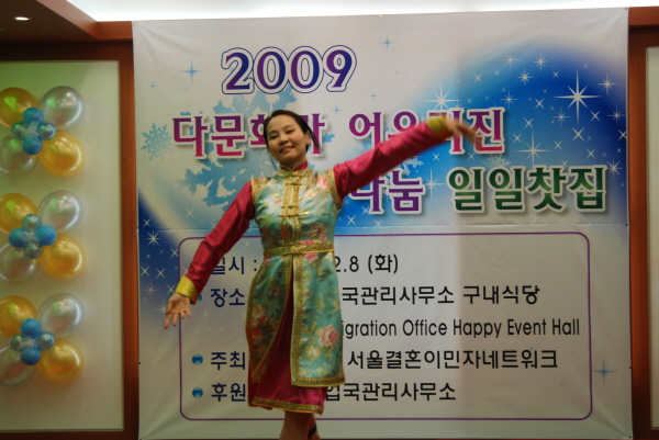 <사진=불우외국인 돕기 행사에서 한 참여자가 몽골 전통춤을 추는 모습.> |