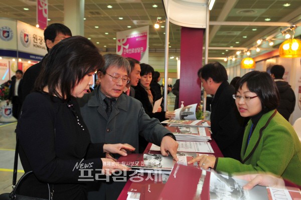 [프라임경제]14일 오후 서울 삼성동 코엑스에서 열린 '2010 대학입학정보 박람회'를 찾은 김경희 건국대 이사장이 건국대 부스에서 수험생과 학부모들에게 나눠줄 진학지도 책자 등을 살펴보고 있다. 이번 대입박람회에는 건국대 고려대 이화여대 등 전국 82개 대학이 참가, 입시전형을 설명하고 모집요강과 홍보책자 등을 나눠줬다.
