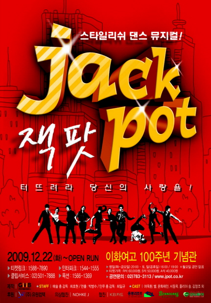 뮤지컬, 연극, 콘서트 등 많은 공연들이 관객을 유혹하는 연말, 댄스뮤지컬 <잭 팟>은 화려한 무대와 의상, 그리고 최고의 안무로 2009년 대한민국 Non-verbal 뮤지컬의 진화를 직접 확인할 수 있는, 올 겨울 가장 뜨거운 뮤지컬이 될 것으로 기대된다.