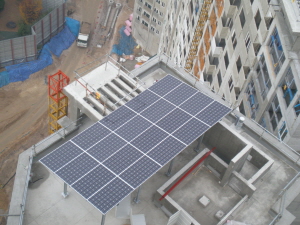 실제로 길음8구역내 주변 건물에 가리지 않고 남향으로 햇볕이 잘 드는 아파트를 골라 옥상에 태양광 집열판을 설치했다. 태양광 발전 규모는 125.5㎾다.