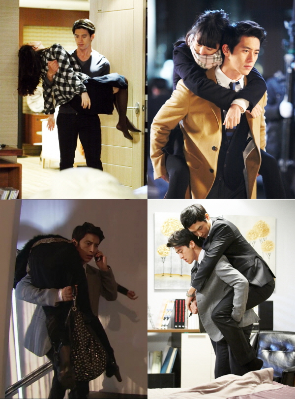 드라마 속 매회 다른 배우들을 안고, 업고, 들고, 메는(?) 천하장사급 연기를 보여주고 있는 것.