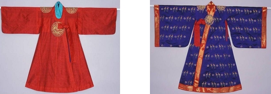 <영친왕 곤룡포(좌)와 영친왕비 적의(우)>