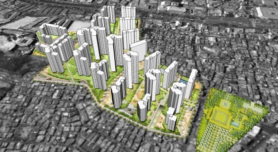 이와 연접한 관악산 및 주변자연경관을 고려해 중저층 및 고층을 고르게 배치하고 층수 지상 3층~28층, 최고높이 113.3m로 재개발 임대아파트 723가구를 포함한 총 4248가구의 주택이 공급될 전망이다.
