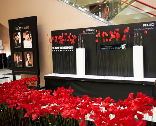 '플라워 로드' 포토존은 '오페라의 유령' 100회 공연을 기념해 겐조퍼퓸코리아에서 특별 제작해 헌정한 전시물. '오페라의 유령'의 트레이드마크인 붉은 장미를 연상시키는 1000 송이의 붉은 색 플라워로 꾸며진 '플라워 로드' 포토존은 공연을 보러 오시는 관객들에게 시각적인 아름다움과 함께, 폴라로이드 촬영 서비스로 멋진 추억을 담아갈 수 있는 즐거움을 선사한다.
