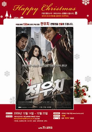 띠아모 메뉴 중 선호하는 메뉴를 기재해 MerryChristmas@ti-amo.co.kr로 전송하면 추첨해 영화 ‘전우치’ 관람권을 증정한다. 기재사항은 선호하는 메뉴, 이유, 이름, 휴대번호 등이다. 관람권은 1인 2매 제공된다.