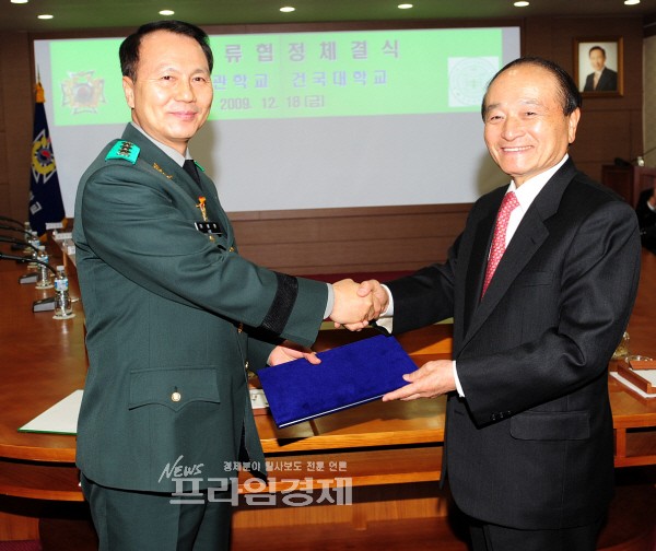 [프라임경제]건국대학교(총장 오 명)와 육군사관학교(교장 이봉원)는 18일 육군사관학교에서 교육·연구분야 교류 확대와 국방 무인로봇 분야 공동연구 등을 위한 학술교류협정을 체결했다. 이에 따라 건국대 항공우주정보시스템공학과 윤광준 교수팀은 육사 로봇연구 전문가 임원택 교수팀과 함께 무인 자동비행체 기술을 이용한 국방무인로봇 개발을 위한 공동 연구를 진행하게 된다.