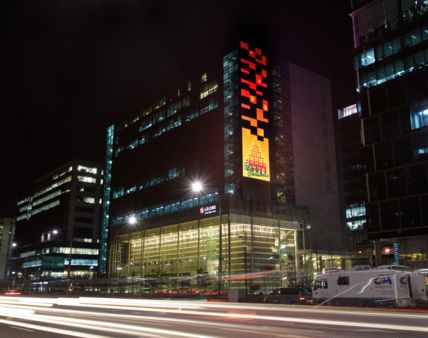 | <상암DMC에 화려한 LED영상이 상영되며 성탄 분위기가 물씬 풍기고 있다> |