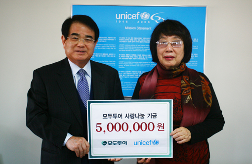 모두투어는 지난 2003년 여행업계 최초로 유니세프 한국위원회와 업무 협약식을 맺고 '사랑의 동전 모으기' 캠페인에 동참해 기금을 전달해왔다. 해외여행을 다녀온 뒤 남는 동전을 집으로 가져가 사용하지 않는 경우가 많은 것에 착안해 '작지만 꾸준한 관심이 세상을 바꿉니다'라는 캠페인 슬로건을 실천하며 6년간 '사랑의 동전 모으기' 캠페인의 공식 후원업체로 활동하고 있다.